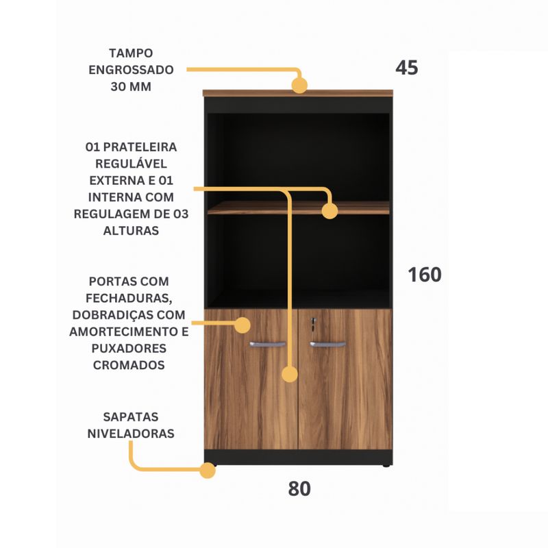 O Armário para Escritório Yaris YAR8017 é a solução perfeita para quem precisa de praticidade, segurança e estilo no ambiente de trabalho. Com um design moderno em Marrom e Preto, ele combina com diversos estilos de decoração e oferece amplo espaço para armazenar documentos, equipamentos e outros itens essenciais. Ideal para escritórios, Home Office ou até mesmo para ambientes empresariais, seu sistema de fechadura com chave garante maior segurança e privacidade.