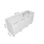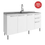 Balcão Pia P/Cozinha 160cm 3 Portas 3 Gaveta Branco