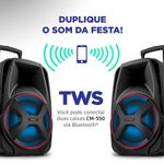 - Função TWS: A função TWS (True Wireless Stereo) permite conectar duas caixas amplificadas CM-550, sem o uso de fios