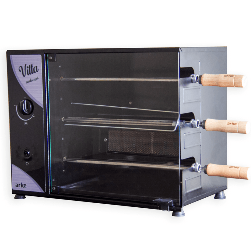 A churrasqueira a gás com 3 espetos rotativa da Arke é a escolha perfeita para os amantes de um bom churrasco! Tem 3 espetos simples e 1 espeto triplo, te garantindo espaço para as carnes. Com sua bandeja coletora de gordura, garante uma experiência mais saudável, sem sujeira excessiva. Feita em aço carbono, na cor preta. A churrasqueira adiciona modernidade ao ambiente. Escolha a churrasqueira da Arke e aproveite o sabor dos melhores churrascos em seu puro sabor!