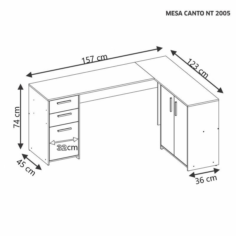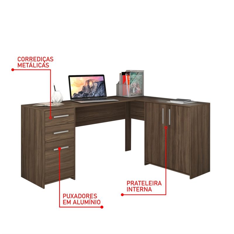 Versátil e espaçosa a Mesa Office NT 2005 da Notável Móveis, oferece para você um local de trabalho ou estudo que permite organizar melhor seus objetos de uso diário. Ela se adequa a sua necessidade, pois o gaveteiro pode ser montado no lado direito ou esquerdo, como você quiser! Conta com puxadores em alumínio e 3 portas dando um charme todo especial ao produto.